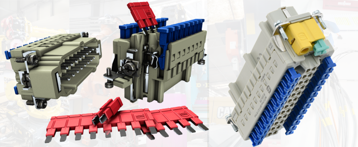 - Han® Push-In: Inserción a presión mediante presión de palancas, que utiliza resortes internos para fijar el cable y facilita reconexiones frecuentes sin pérdida de contacto.