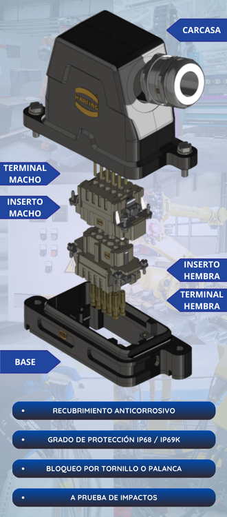 Son los conectores rectangulares más robustos de la marca. Cuentan con múltiples certificaciones y homologaciones internacionales, diseñados