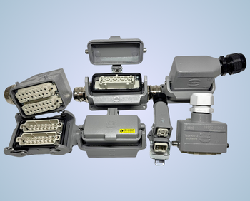 Conectores industriales Harting® diseñados para aplicaciones robustas, con opciones de montaje en distintos tamaños y protección IP65, IP67 o superior.